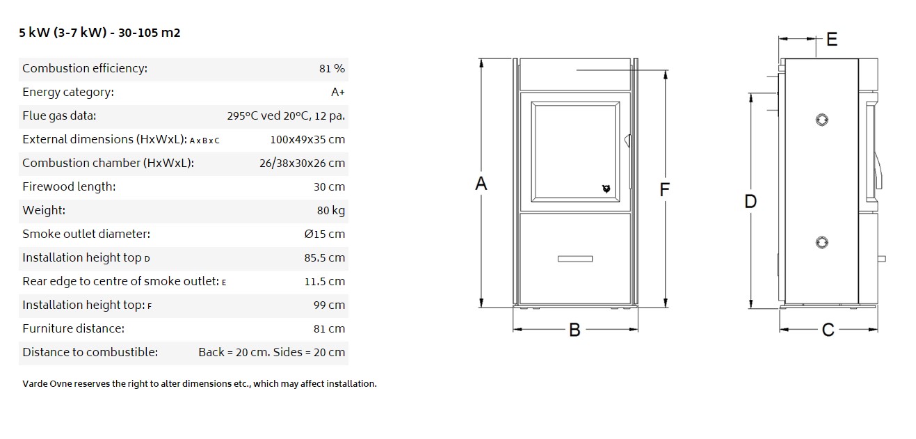 Minimale afstand tot brandbare materialen: 30 cm aan de zijkant / 20 cm aan de achterkant