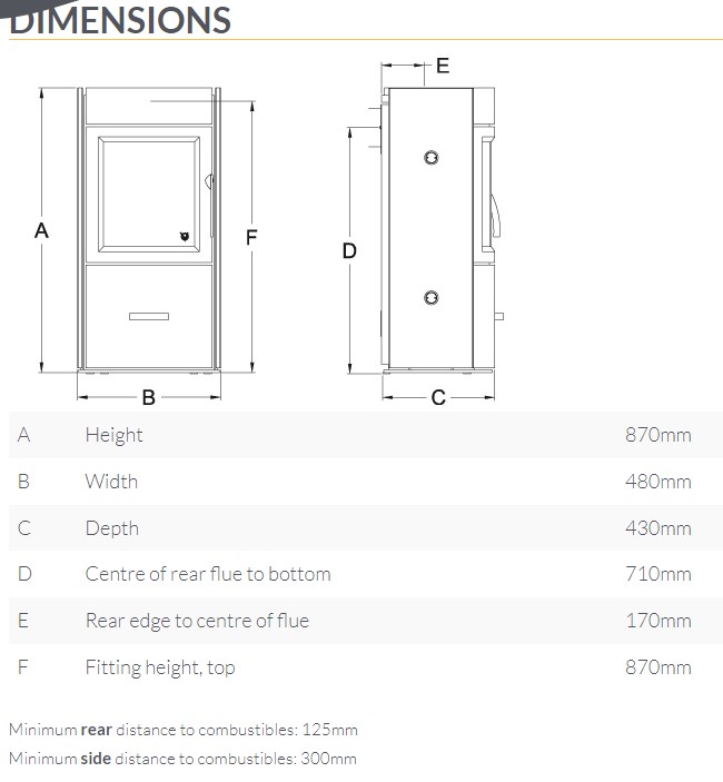 Minimale afstand tot brandbare materialen: 30 cm aan de zijkant en 12,5 cm aan de achterkant
