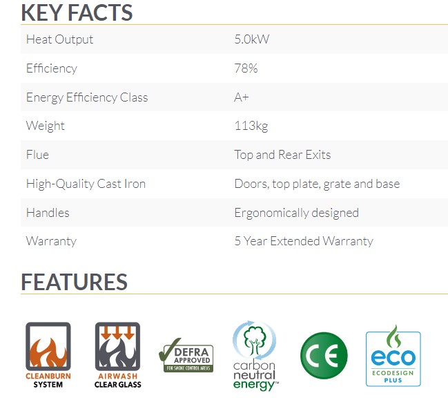 Bovendien maakt de energie-efficiëntieklasse A+ van de kachel hem een ??milieuvriendelijke optie, en het ECODesign 2022-conforme ontwerp betekent dat hij voldoet aan de nieuwste Europese normen.